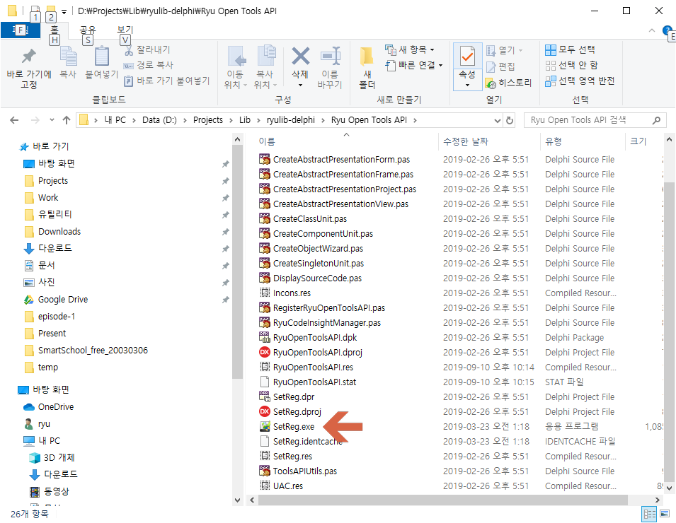 - “Ryu Open Tools API” 폴더에 있는 SetReg.exe를 실행합니다. 그러면 “Ryu Open Tools API”에서 필요한 파일이 있는 경로가 설정됩니다.